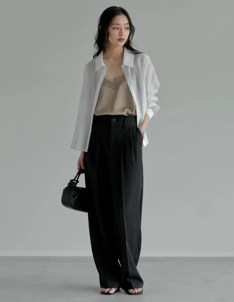 ① 透け感素材で一気に今っぽく